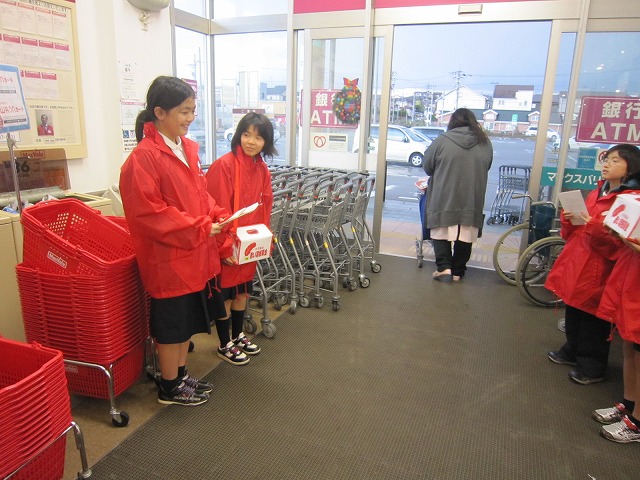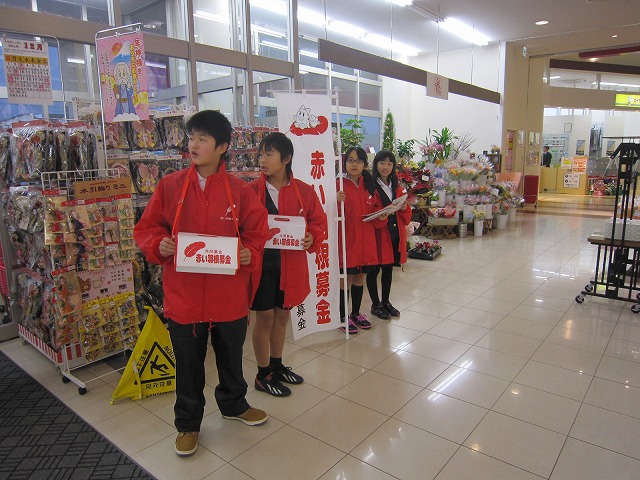 ☆12月11日に運営委員の子どもたちが、コンフォモールのマックスバリュー前で赤い羽根共同募金を行いました。