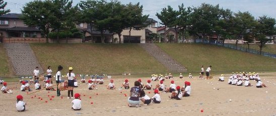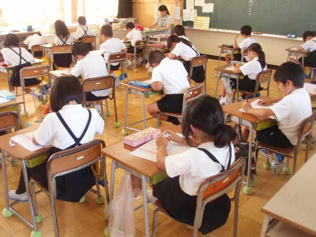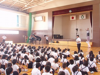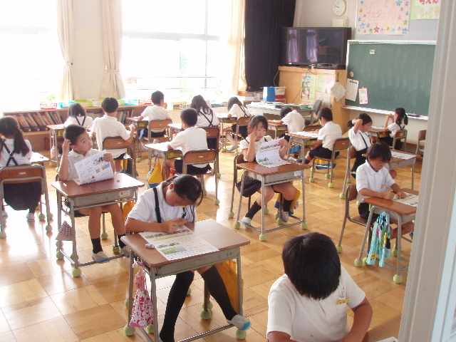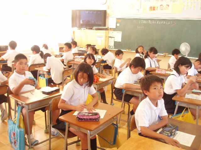 どの子も元気な顔で登校し、「暑さに負けず」朝から運動場でサッカーをしている子どもたちもいてびっくり。