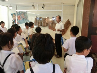 そこで、町内にある「風と砂の館」に見学に行きました。昔、内灘町にあった「粟崎遊園」や「内灘闘争」「河北潟」についてお話を聞いたり、昔の道具を実際に見たりしてたくさんのことを学んできました。自分たちの調べ学習に生かせるといいですね。