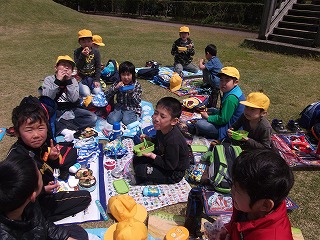辰口丘陵公園に到着。待ちに待ったお弁当タイムです。