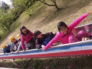 おやつの後は・・・なが~いすべり台に挑戦・・・みんな、ついてきてる~!