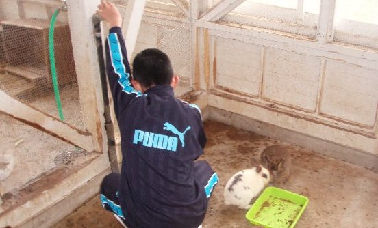 春休みなのに毎日飼育委員の子どもがウサギのお世話に登校しています。