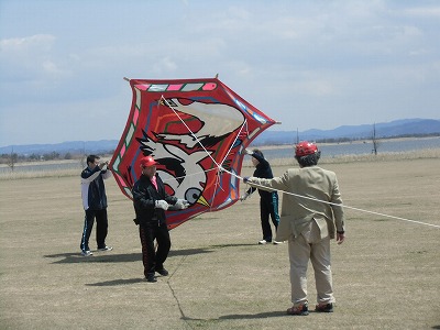 蓮湖渚公園にて、凧の試し揚げを行いました。