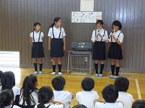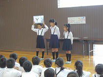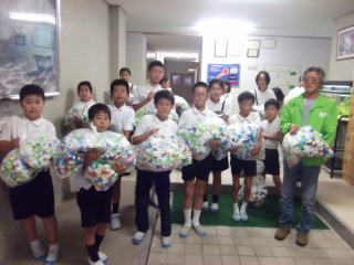 9月17日、環境委員が全校で集めたエコキャップを一歩さんに預けました。