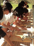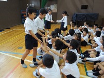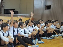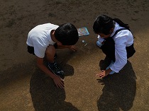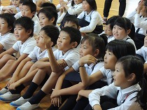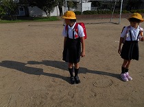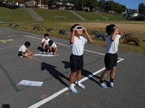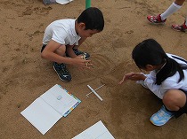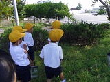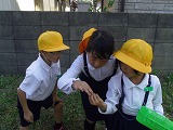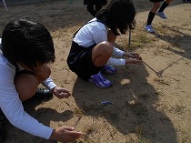 運動会が終わり、だんだん秋らしくなってきました。虫のいい声も聞こえてくるようになり、虫探しをしました。運動場の草むらや前庭の草むらを探すと、ばった、ちょうちょ、かまきり、だんごむし、とんぼ、こおろぎなどいろいろな虫をみつけることができました。「うしろからそっと、すばやくつかまえるよ」とつかまえかたのこつをともだちに教えてくれる子もいました。春と違って、大きく成長しているばったに大喜びの子どもたちでした。まだまだ、むしさがしは続き、休み時間にも楽しそうに出かけています。