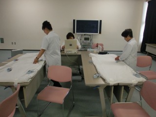 予防医学協会の方々が優しく、1年生の心電図をとってくれました。