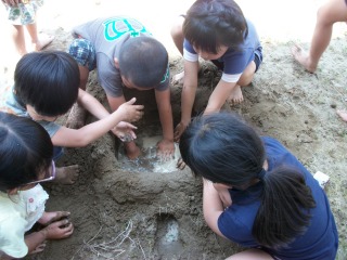 校区内に、ある公園を探検しました。