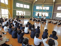 4月17日、1年生の子どもたちも学校にだんだん慣れてきました。6年生が校歌を教えに来てくれました。6年生の上手な歌声を聞いた後、1年生と6年生で一緒に校歌を歌いました。とてもすてきな歌声が響きました。