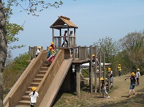 山頂のアスレチックで仲良く遊び、おいしいお弁当を食べました。