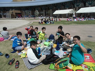 動物園のあとは、公園に行き、待ちに待ったお弁当とお菓子、遊びの時間でした。グループで円になり、嬉しそうにご飯を食べる子ども達の顔は、本当に幸せそうでした。