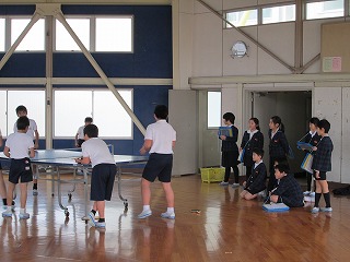今日はダブルスでの対戦練習でした。和気あいあいの雰囲気のなかにも、