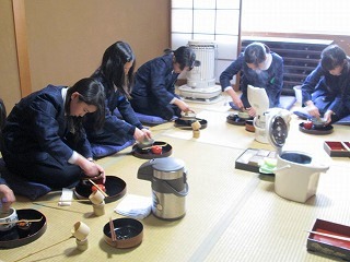 静寂な空気に包まれるなか、みんなで和菓子をいただき、