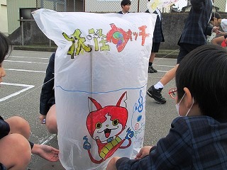 イラストを描いて、オリジナルの熱気球を大空に飛ばしました。