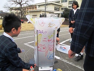 みんなで道具を用意し、好きなイラストを描いて楽しくプラパン作り