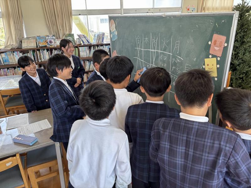 5人の子どもたちが前に出て一生懸命札を上げたり下げたりしていました。