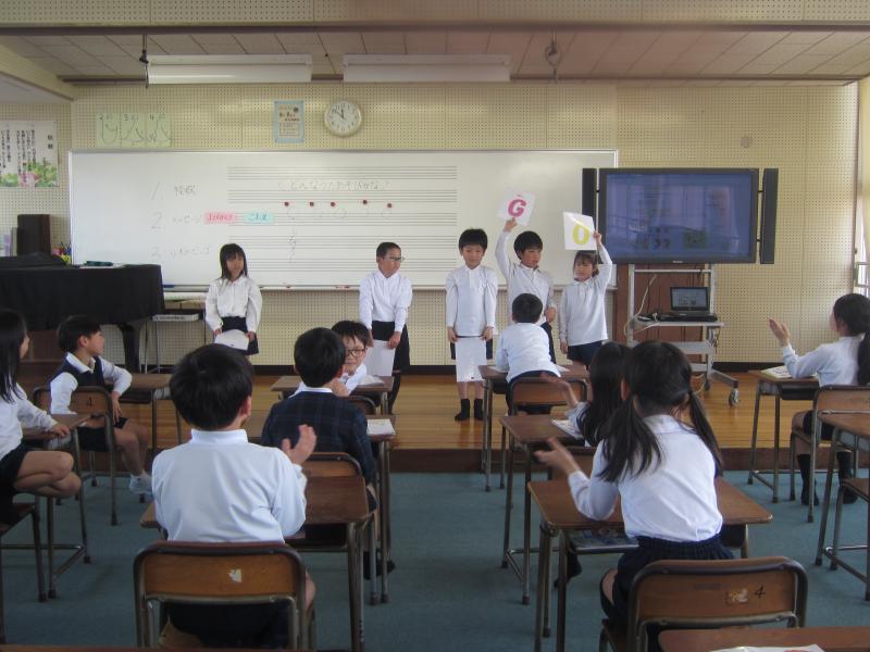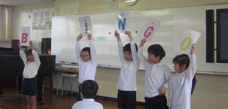 歌の学習に意欲的な2年生。今日は子犬のビンゴをみんなで歌いました。