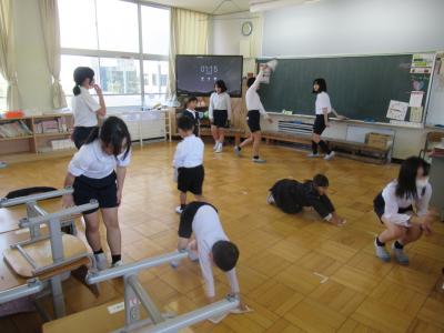 5.6年生合同で12名程度のグループを5つ作り、リーダー活動部、放送部、健康部、図書部、体育部の5つの部を持ち回りで受け持ちます。そして、原則1ヶ月で交代しながら学校全体を「楽しく豊かに」することを目的に「自主的・自発的」活動を目指します。