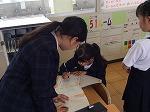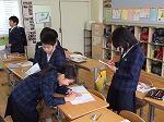 6年生にぞうきんの絞り方、机の持ち方を教わりながら