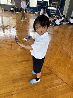 なかには、いつの間にか顔や体、ポロシャツに絵の具がついてしまう子もいました。