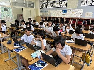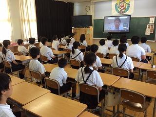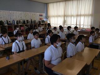 校長先生の話と夏休みの生活についての話を聞きました。どのクラスもモニターをしっかり見て話を聞いていました。特に六年生の姿勢はとてもよかったです。