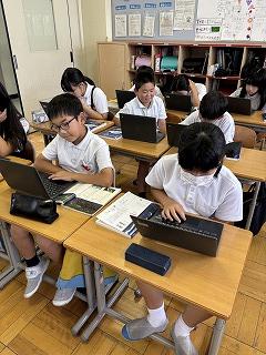 6年生が国語の時間に、デジタル機器とのよりよい付き合い方についてのプレゼンテーションを行いました。「ネット詐欺にあわないために」「偽の情報に気をつける」などデジタルシティズンシップに関わった学習です。