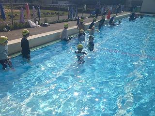 今日は各学年、着衣泳を行います。万一、川や池などに落ちてしまったときに、服を着ているとどれくらい泳ぎにくいか、そして、どうすれば身を守れるかの学習です。