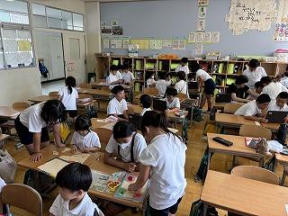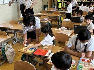 1年生に優しく教える5年生の姿がとても微笑ましかったです。