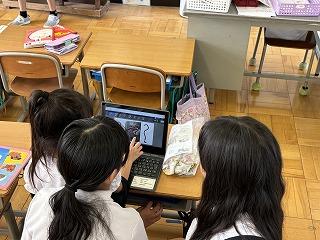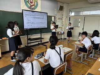 班ごとに設定したテーマについて、タブレットを使いながら分かりやすく説明することができていました。