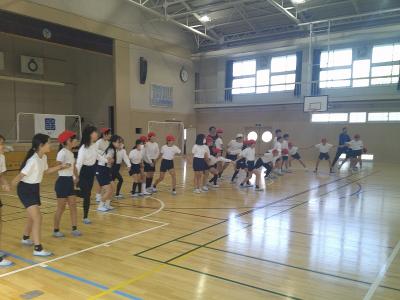 3限目は体育館で、チームワークが必要になるゲームをしました。最初はうまくいきませんでしたが途中で作戦を練り最後にはみんなでミッションをクリアしました。