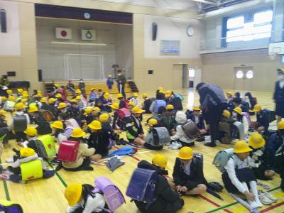 体育館に集合して下校班別の人数確認。確認完了後に全体で注意事項を聞いて下校スタートです。これまでより集合時間や確認時間が短くなりました。