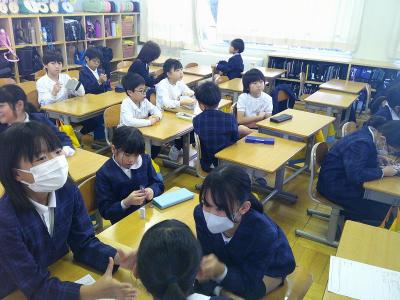 実は4年生同士の交流は、去年から続いており、今年も一緒に学習できて嬉しく思っています。だんだん緊張もとけ、楽しそうに話していました。