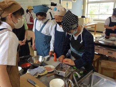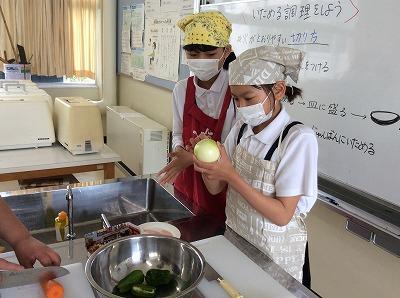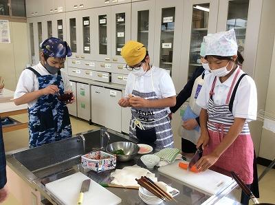 野菜に合わせた切り方、炒める順番を工夫しながら、みんなで協力して調理を進めました。