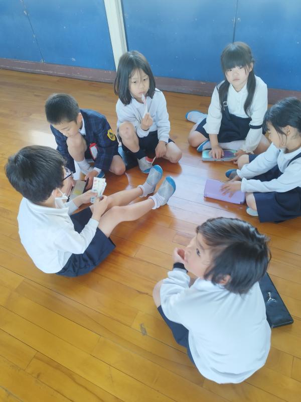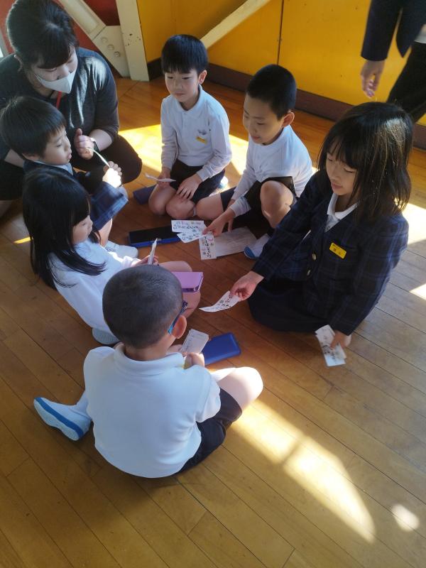 同じふれあいグループの子と手づくりの名刺交換をし、それぞれ自己紹介をしました。