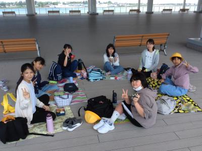 1日の遠足が延期となり、気持ちのよい天気の中、金沢港クルーズターミナルと港公園に行きました。