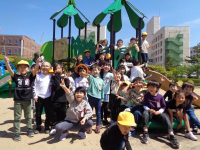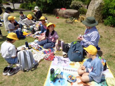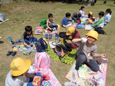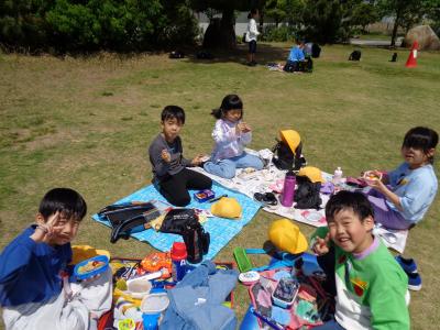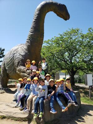 爽やかな五月晴れの中、1・2年生で内灘町ハマナス恐竜公園に行きました。