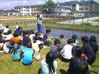 はじめに、ゲストティーチャーの川辺 俊一さんから、田植えのコツについてお話を聞きました。