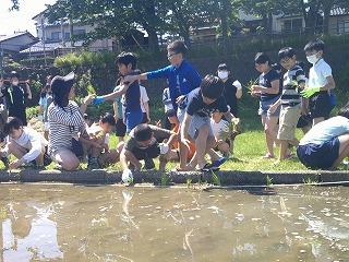 はじめはおそるおそる田んぼに入る子もいましたが、途中からは争うように田植えが進みました。