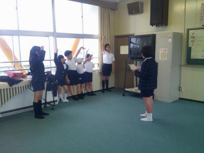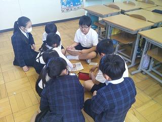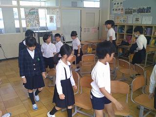 掃除の終わりには、6年生の声かけで、しっかり一列に並んで反省会ができていました。