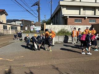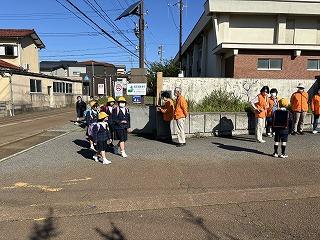 朝の登校時間にあわせ民生委員・主任児童委員の方が、挨拶運動にいらっしゃいました。今年度は、鶴ケ丘小校区、西荒屋小校区の両方で多くの方に来ていただきました。