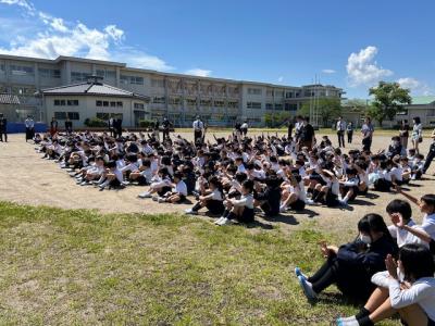 「オカシモチ(おさない,かけない,しゃべらない,もどらない,ちかづかない)」の約束を守って,素早く運動場に避難することができました。