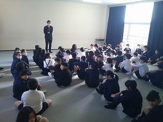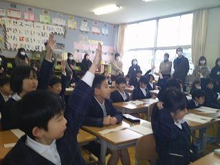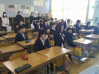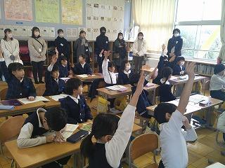 自分で計画的に勉強を進めないといけないことなどの話を聞き、よい刺激になったようです。質問タイムでは下校時刻や部活動、そして休み時間の過ごし方などについての質問がありました。6年生のみんなが興味津々で話を聞いていたことが印象的でした。