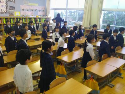 校長先生から、「2月4日は立春。暦の上では春となります。春のようにあたたかい心を広げてください。」という話がありました。次に2月の生活目標「感謝の気持ちを伝えよう」について北川先生からお話がありました。最後に、5年生の代表が全校に向けて6年生を送る会についてのお知らせをしました。