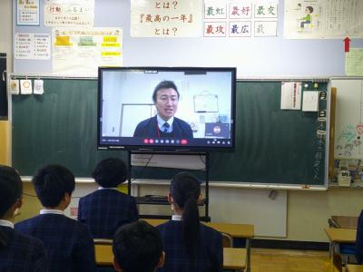 2月の全校集会は、リモート形式で行いました。
