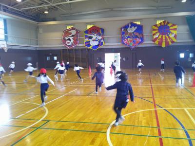 1・2年生の合同体育でふれあいおにごっこ集会を行いました。