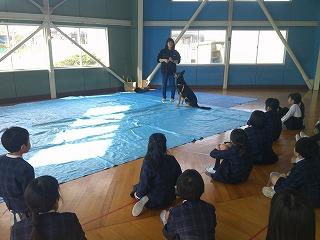 6限目に3年生が「警察犬とのふれあい教室」を行いました。