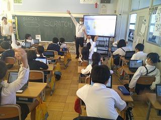 いろんな指示を組み合わせることでキャラクターの動きに変化が生まれ、子どもたちはとても集中して、楽しんでいました。また、授業の後半には近くの子と教え合う姿も見られました。