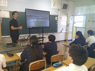 6年生が総合的な学習の時間にキャリア教育の一環として、ツエーゲン金沢の廣井友信さんにお話をうかがいました。