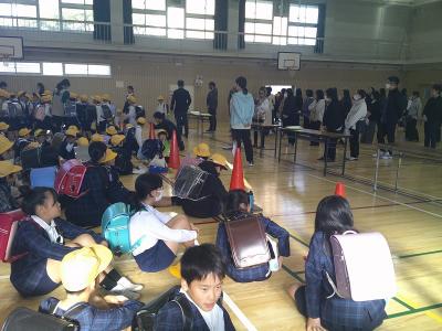 親子講演会後の6限目に災害発生時を想定した児童引き渡し訓練を実施しました。名簿に照らし合わせながら間違いなく児童を保護者に引き渡す手順を確認しました。