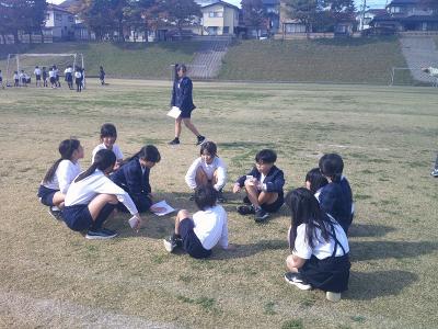 青空の下,内灘町小学校サッカー交歓会が行われました。運動会の後、メンバーやフォーメーションも自分たちで決めて本番に臨みました。コートの広さや相手の戦術に戸惑うことも多かったように感じましたが、子どもたちは声を掛け合い、一生懸命頑張る姿がとても印象的でした。他校のプレーにも、「すごい!ナイス!」など声を掛ける姿もとても素晴らしかったです。次はランフェスでも活躍してくれることを楽しみにしています!