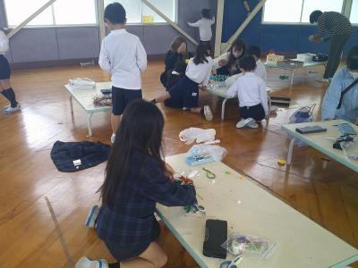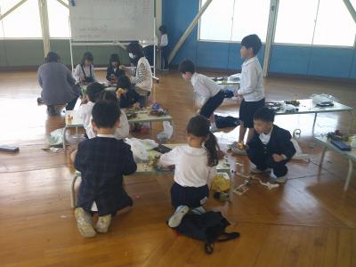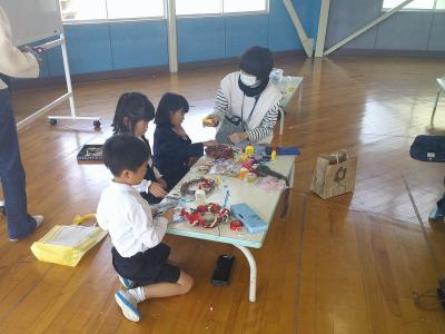 7名の保護者の方にボランティアに来ていただきました。子どもたちは保護者の方に教わったり手伝ってもらったりしながら思い思いに作品を仕上げていました。